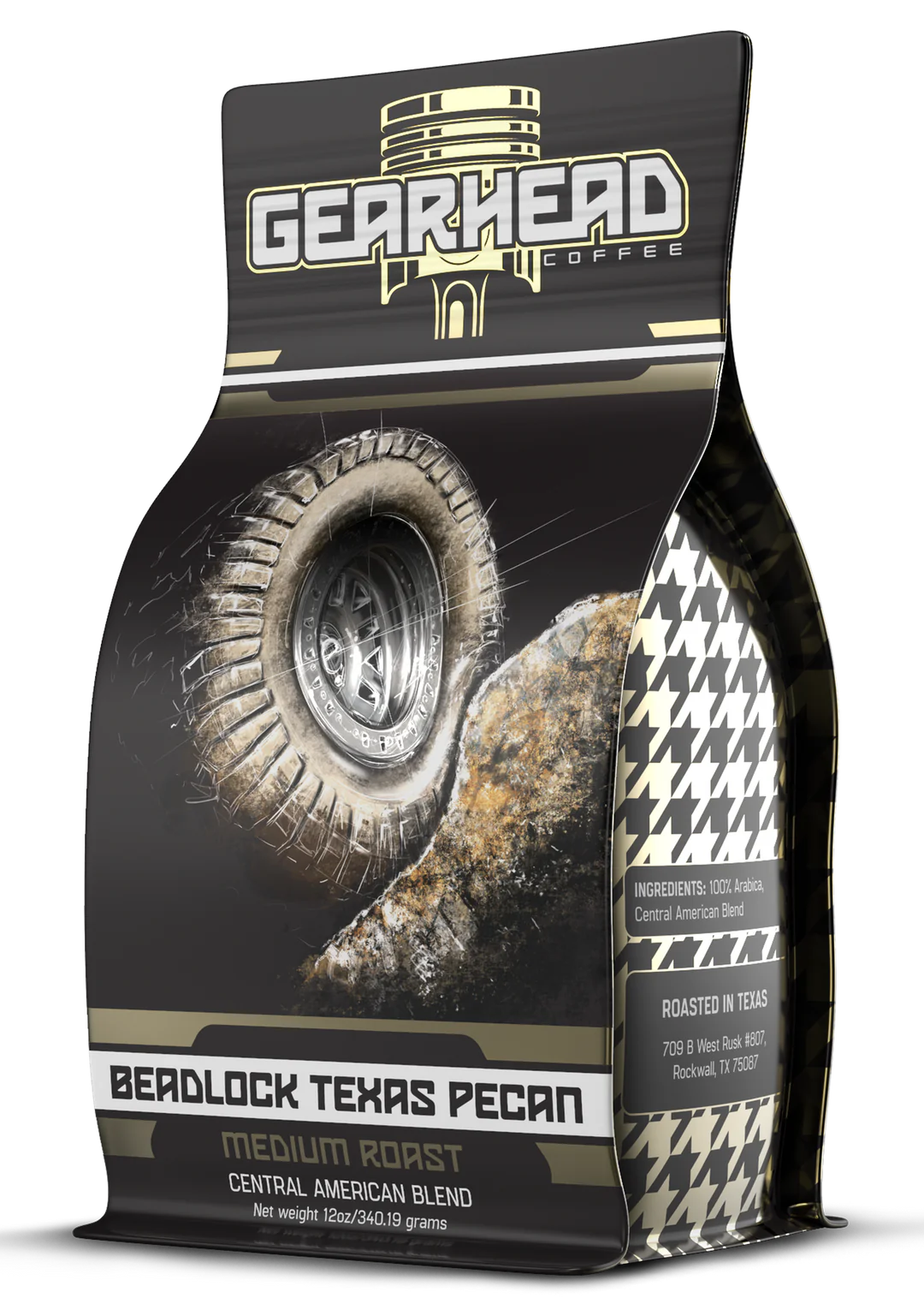 While the coffee will get you up on the trail, it’s the beadlock wheels that will keep you going. Developed 40 years ago by Marsh Racing, the beadlock wheel was originally designed for the Dodge Military Truck. These wheels were dubbed the “combat wheel” and kept tires and wheels from dismounting under the harshest conditions. Today you will find beadlocks on all types of vehicles such as Jeeps, trophy trucks, rock crawlers and utv’s. This small batch roast uses natural pecan oil to give this sweet, rich flavored coffee a subtle hint of pecan. If you are out on the trail or headed to the off-road park for the weekend, there are two things you will need, Beadlocks and Gearhead Coffee’s Beadlock Texas Pecan.