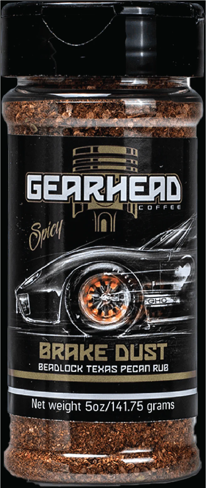Fuel Your Day and fuel your food with our sweet and spicy Brake Dust rubs. Our sweet rub has hints of cinnamon, nutmeg, as well as our Grand Prix Espresso to add that bold contrast. If spicy is your thing, you should try our Beadlock Texas Pecan Brake Dust. This rub has a kick and can be added to any meats.