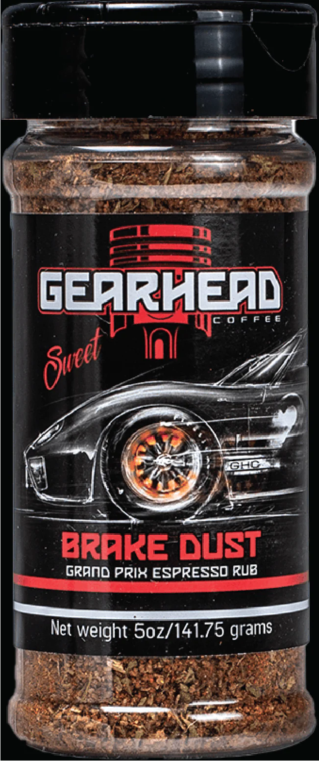 Slam on the brakes and get your hands on our Brake Dust Meat Rub, made with Gearhead Coffee Grand Prix Espresso. This rub is great on ribs, brisket and chicken. This rub has a sweet flavor with hints of cinnamon and allspice.